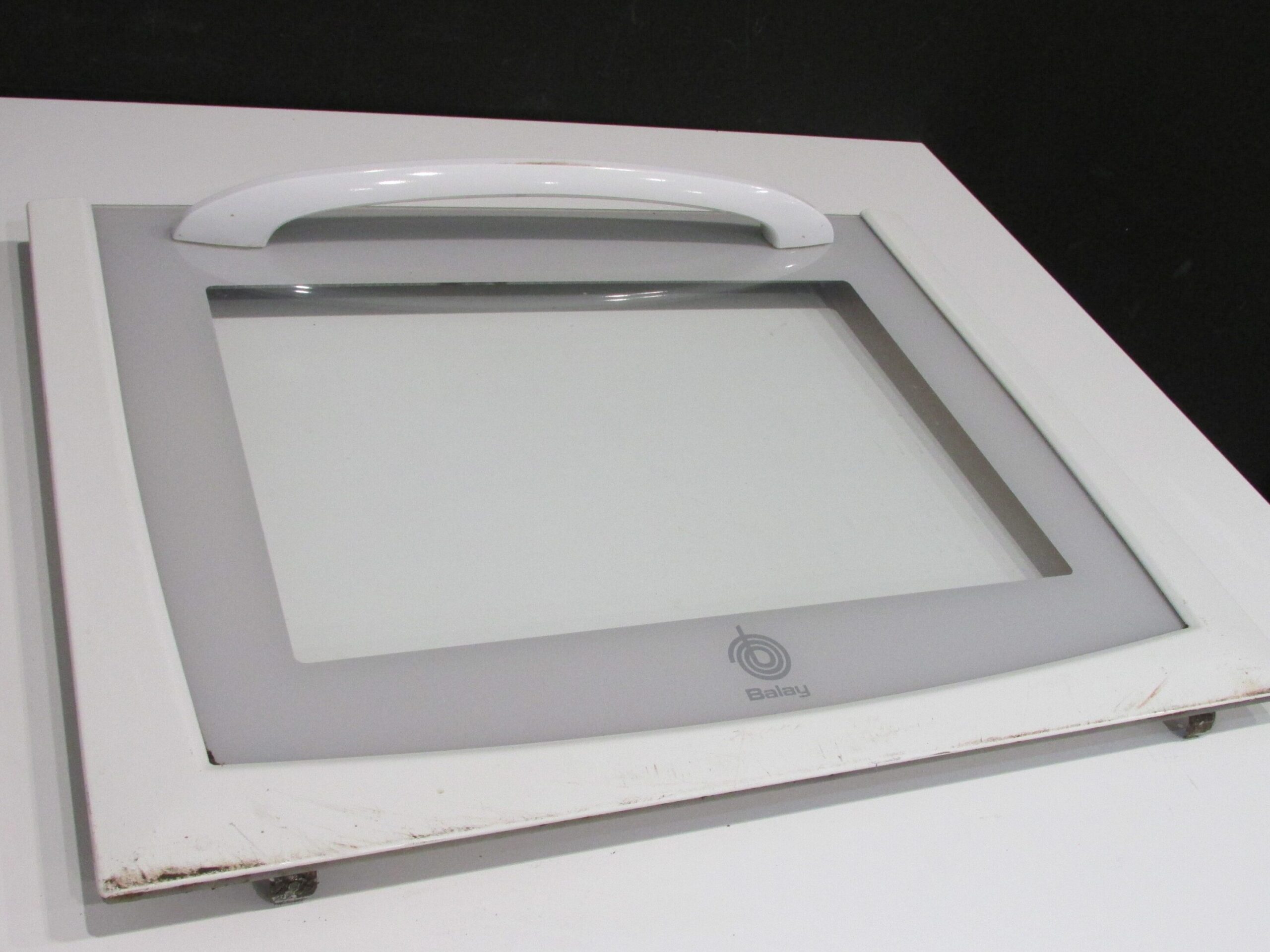 Una vez que tenemos la puerta del horno Balay en nuestras manos, es importante separar las bisagras. Para hacer esto, debemos presionar las pestañas que se encuentran en los laterales de las bisagras, y luego retirarlas de la puerta.