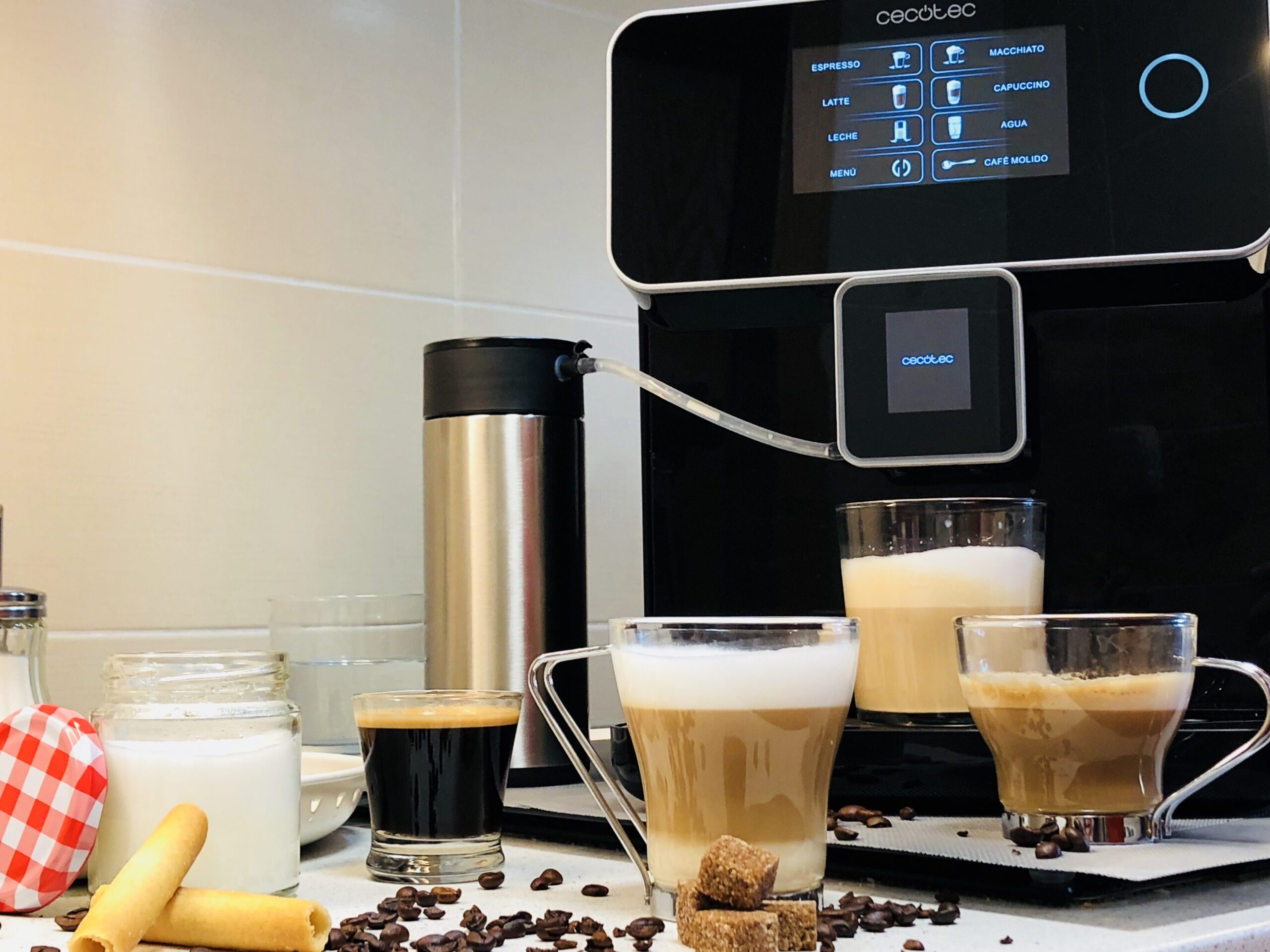 La cafetera Cecotec 8000 es una máquina de café automática que ofrece una gran cantidad de características útiles para hacer una gran variedad de bebidas. Una de las principales características que destacan en esta cafetera es su pantalla LED táctil de 4,3 pulgadas, que permite seleccionar la bebida deseada con facilidad.