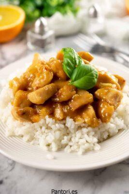 Este pollo de naranja no se semeja a nada, solo tiene cinco elementos, pero el gusto es increíble.